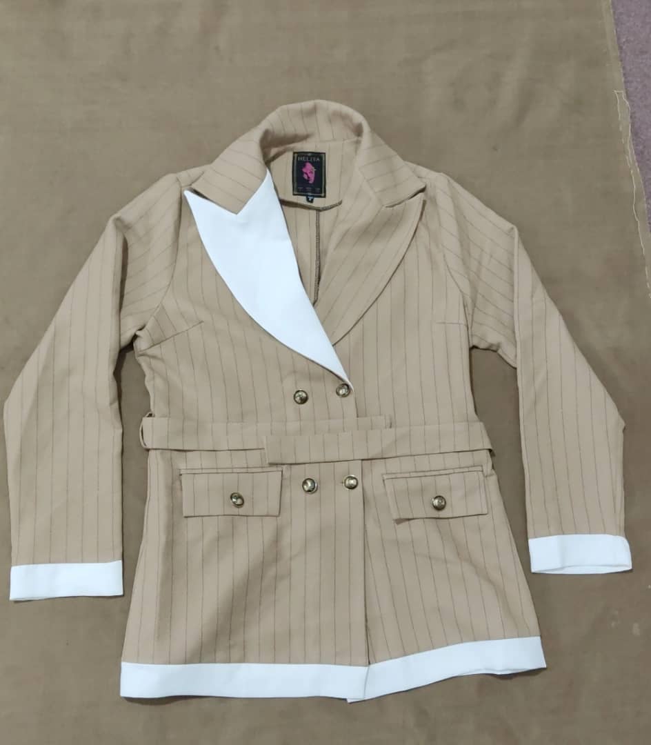 کت تک دیپلمات زنانه مدل کمربنددار – رنگ سبز، کرم و قهوه‌ای، سایز L1 و LX2