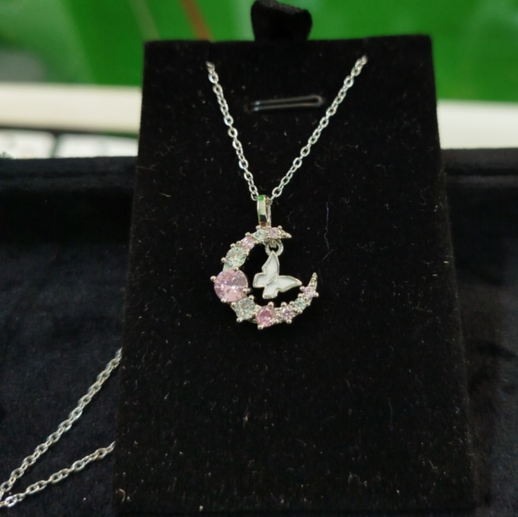 گردنبند استیل نگین دار طرح ماه و پروانه کد ۹۰۷