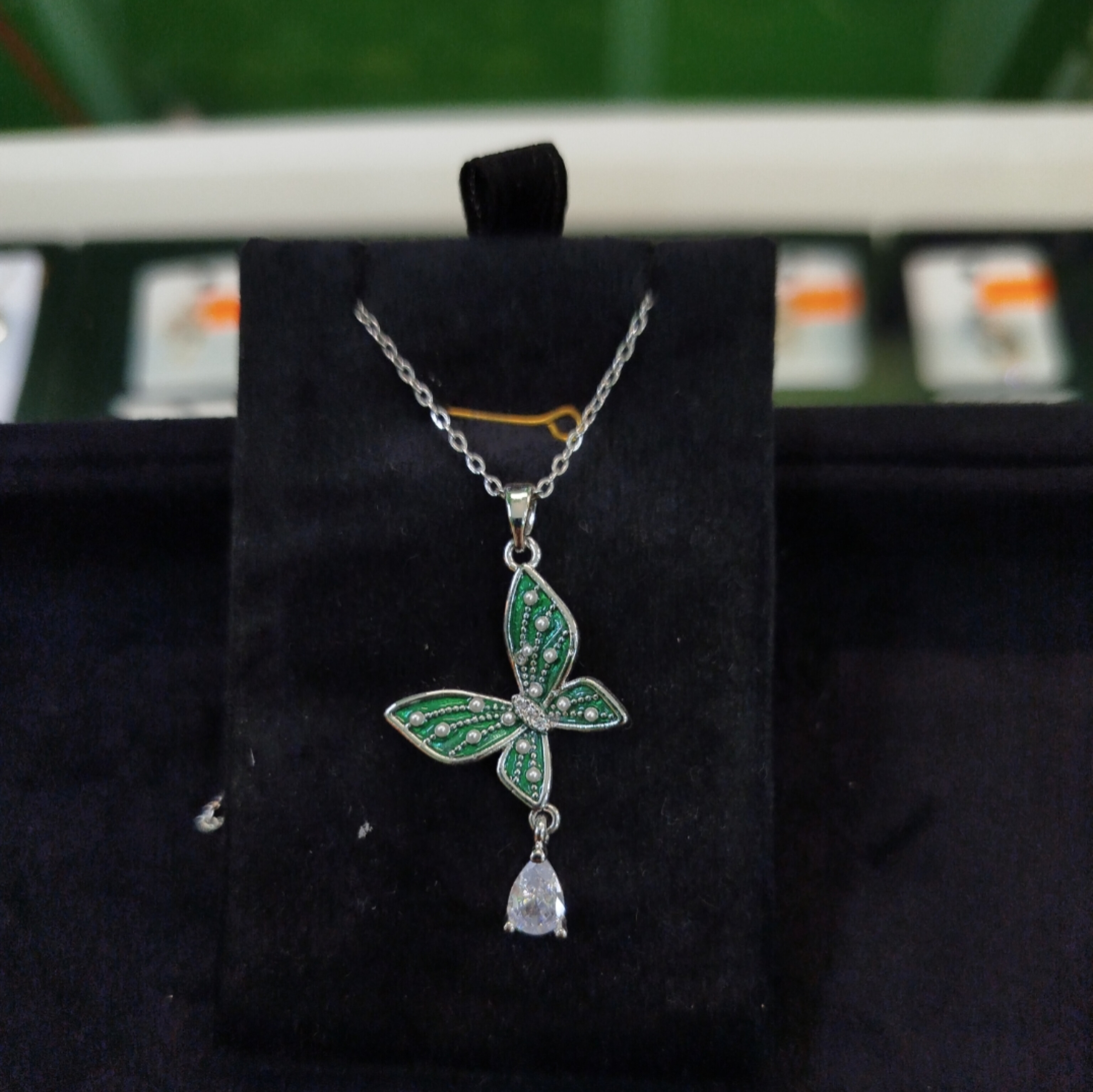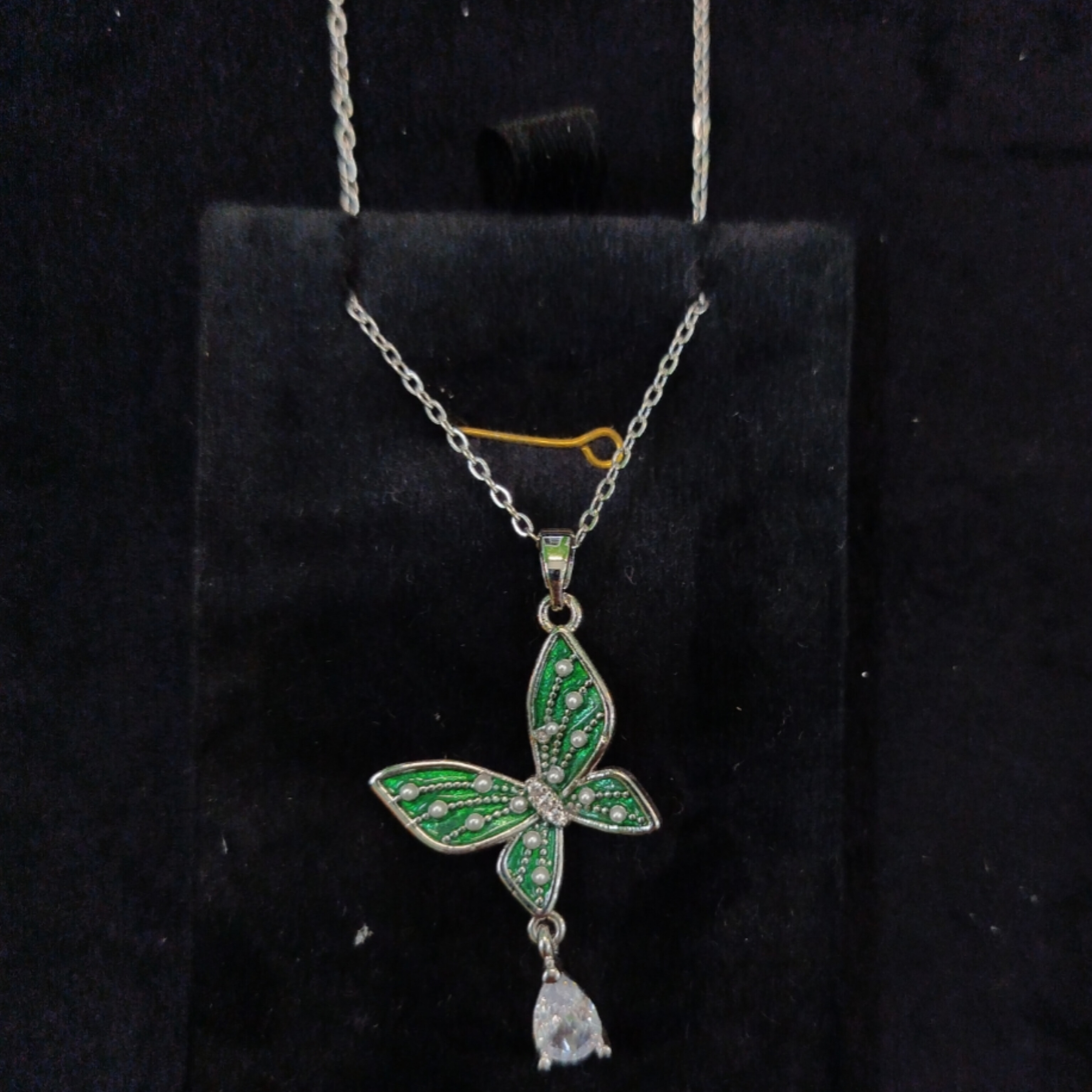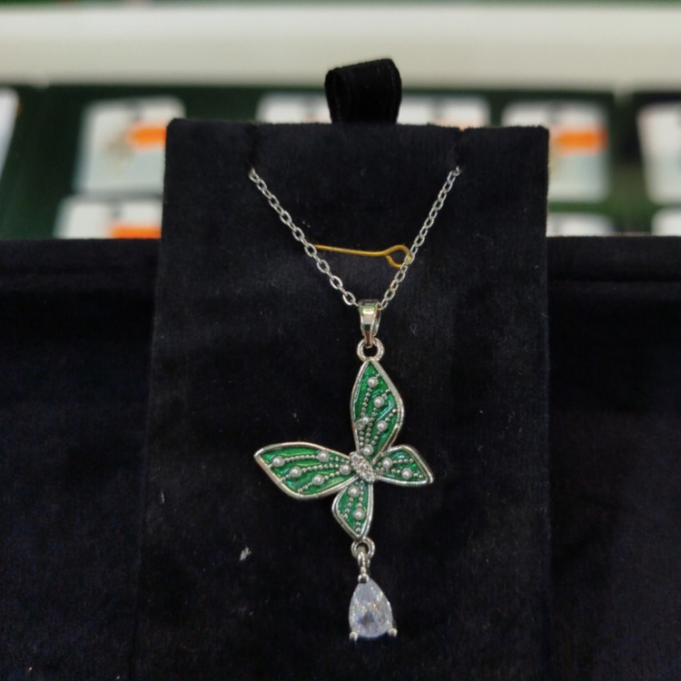گردنبند طرح پروانه سبز رنگ نگین دار کد 9013