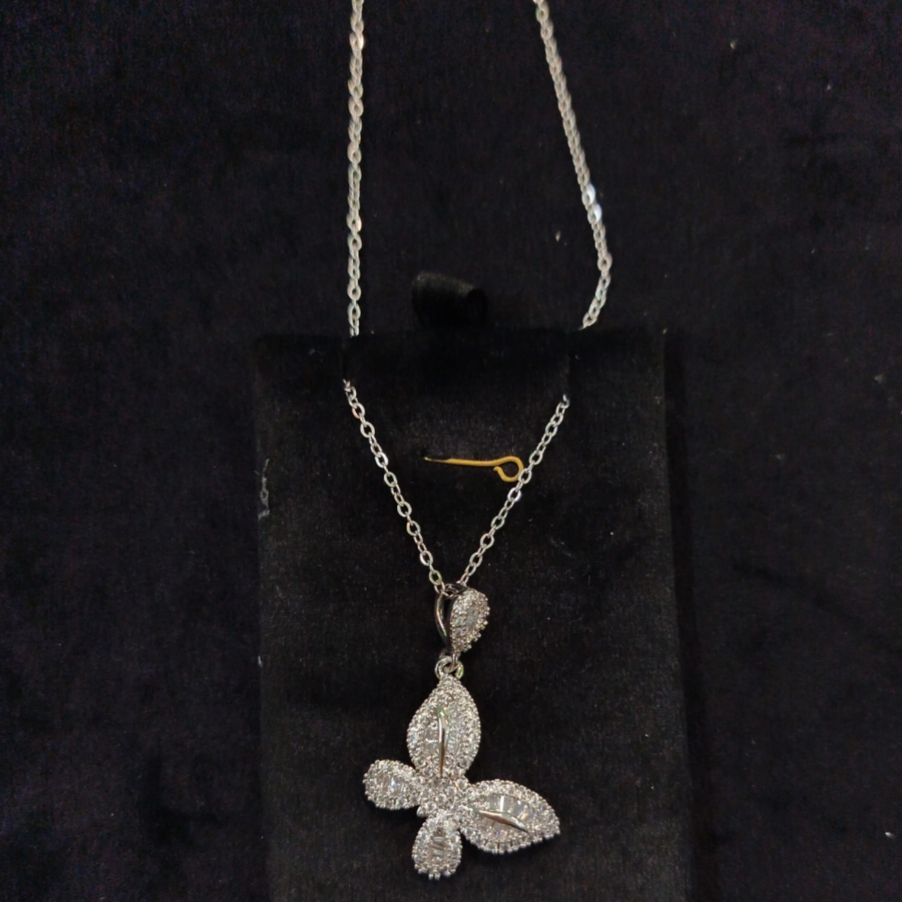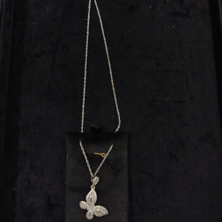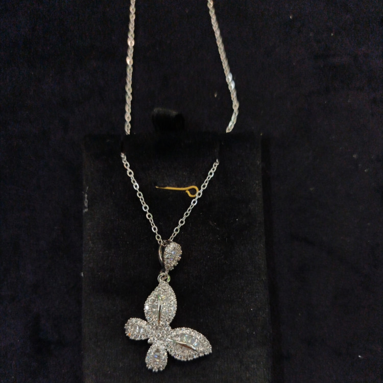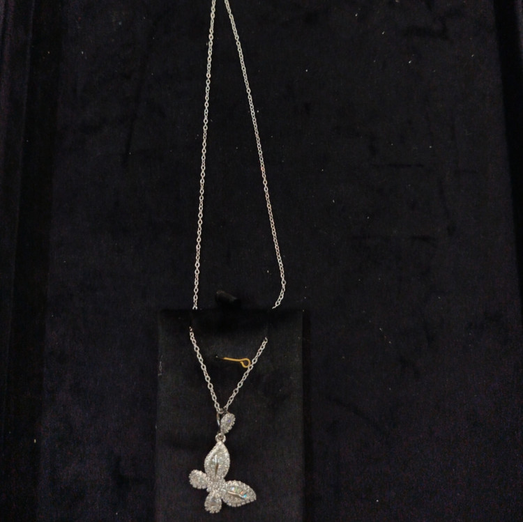 گردنبند طرح پروانه سفید نگین دار کد 9014