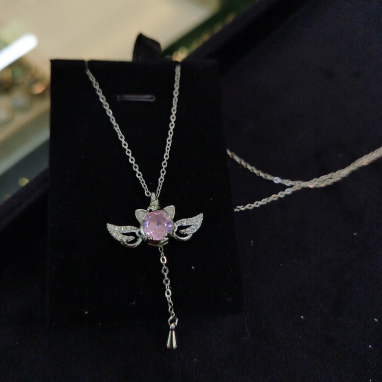 گردنبند طرح گربه بال فرشته نگین صورتی کد B9032