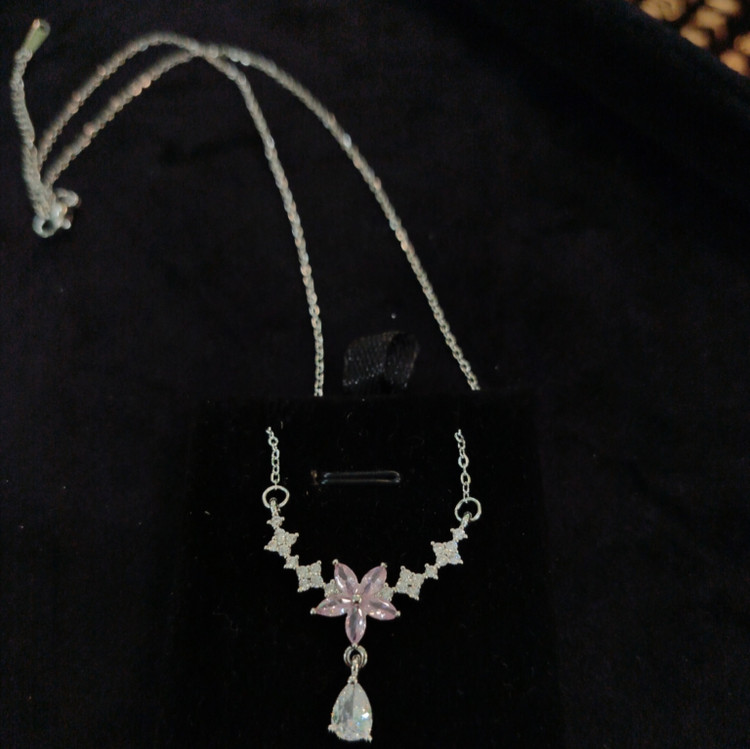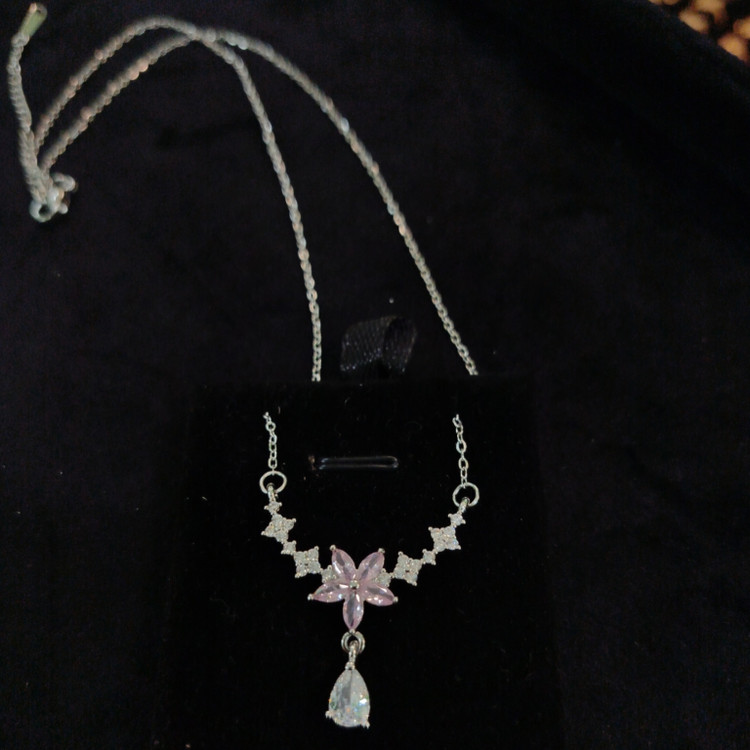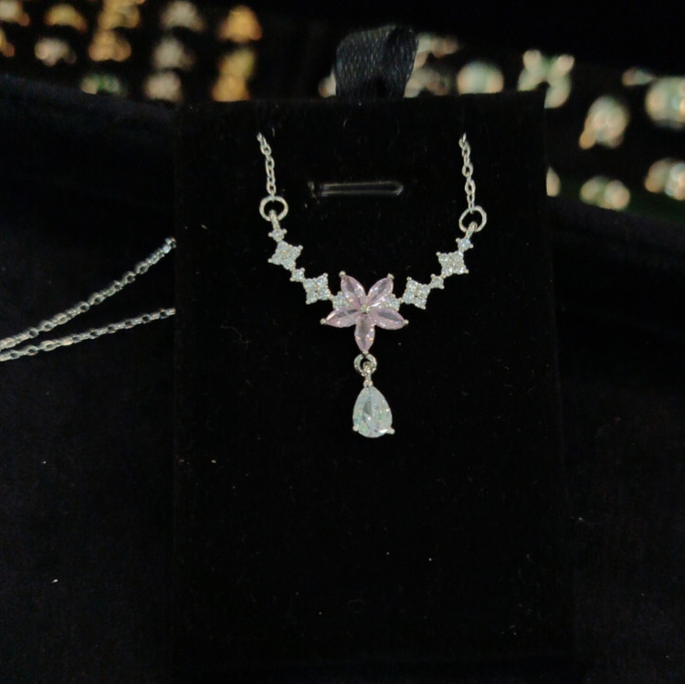 گردنبند طرح گل پنج پر نگین اشکی کد B9041