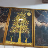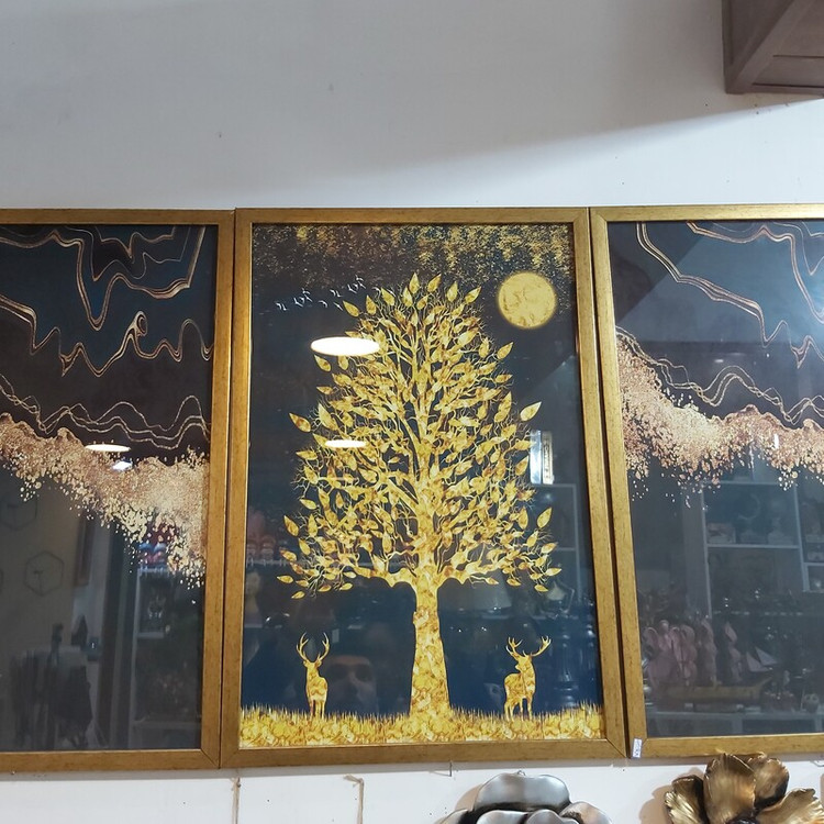 تابلو سه تیکه رزین ورق طلا طرح گوزن و درخت