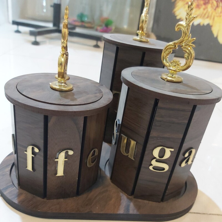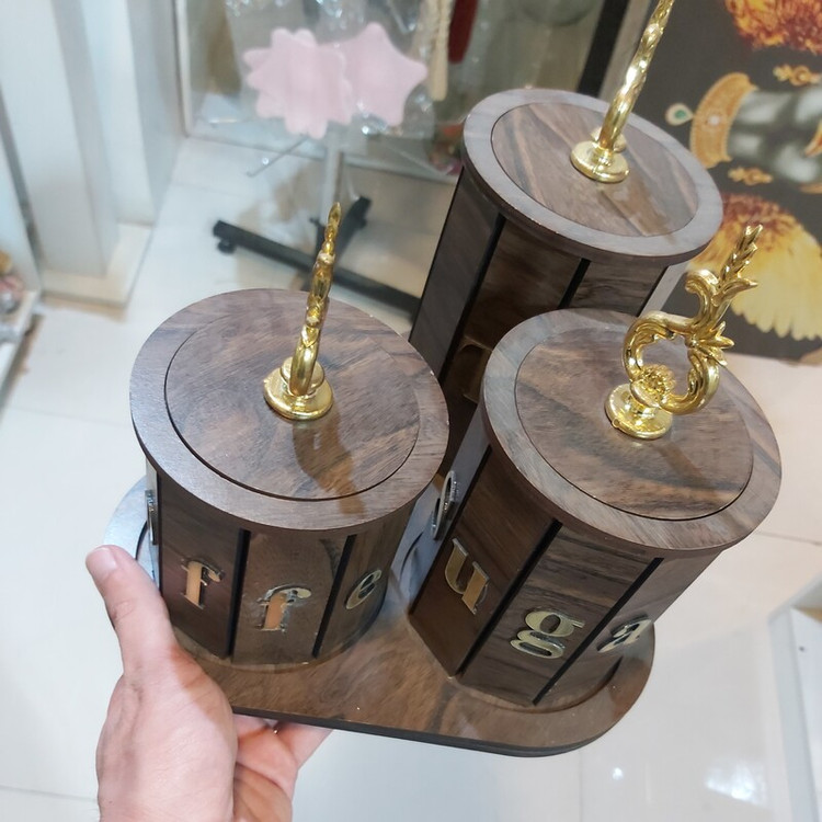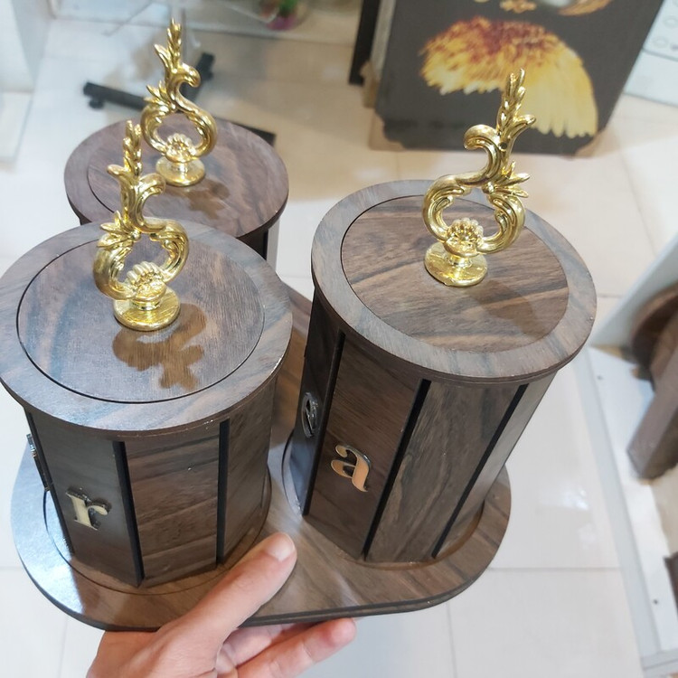 پاسماوری تمام چوب سه تیکه باهم سه سایز از 10 تا 25 سانت برش لیزر همراه سینی