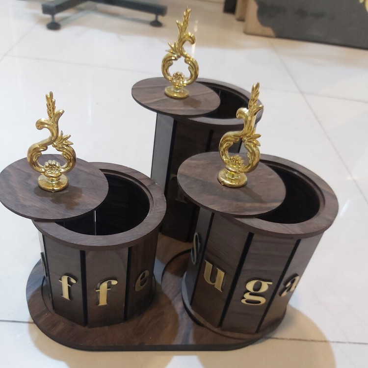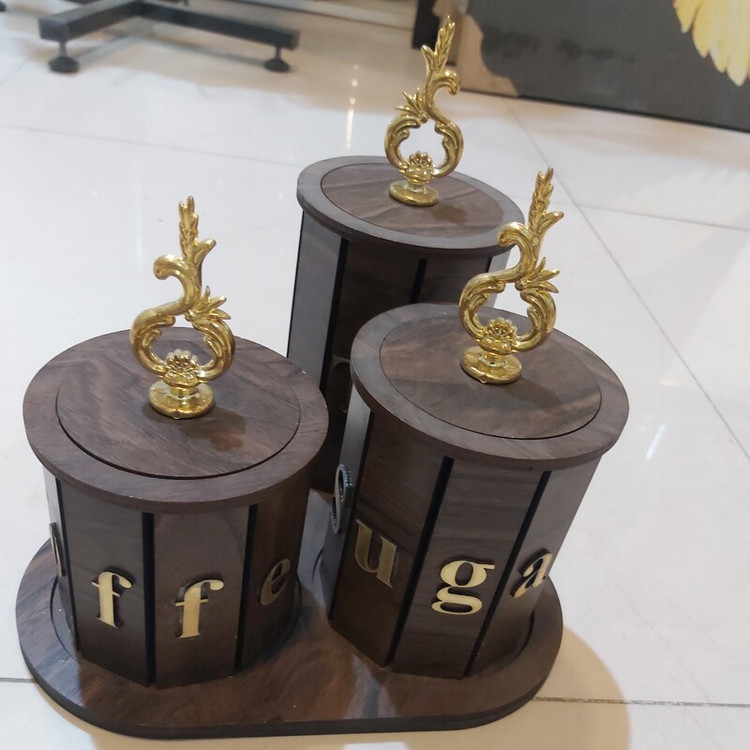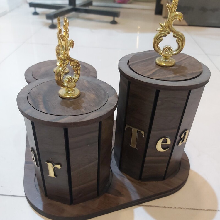 جا چای،شکر،کافه تمام چوب سه تیکه همراه سینی کد ۹