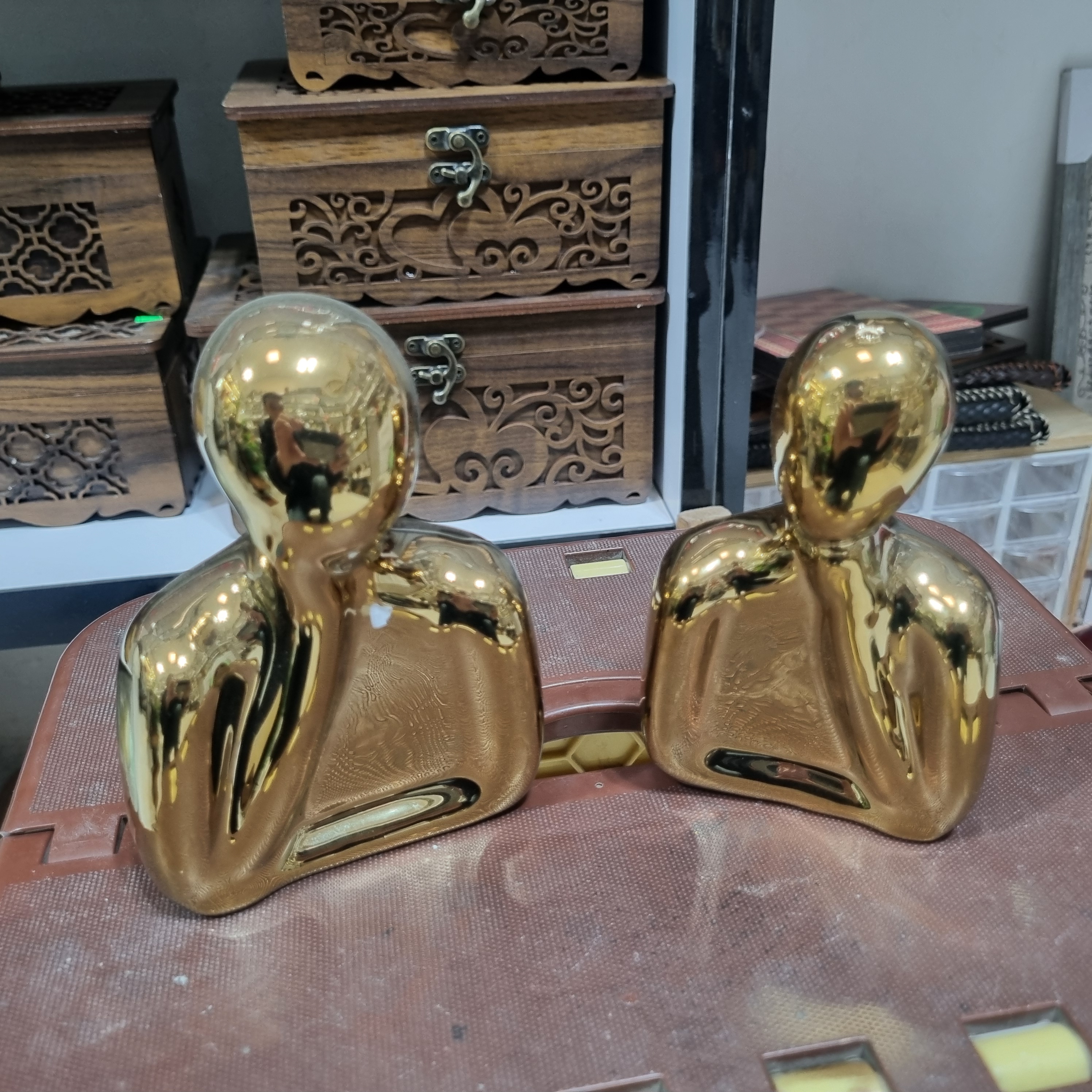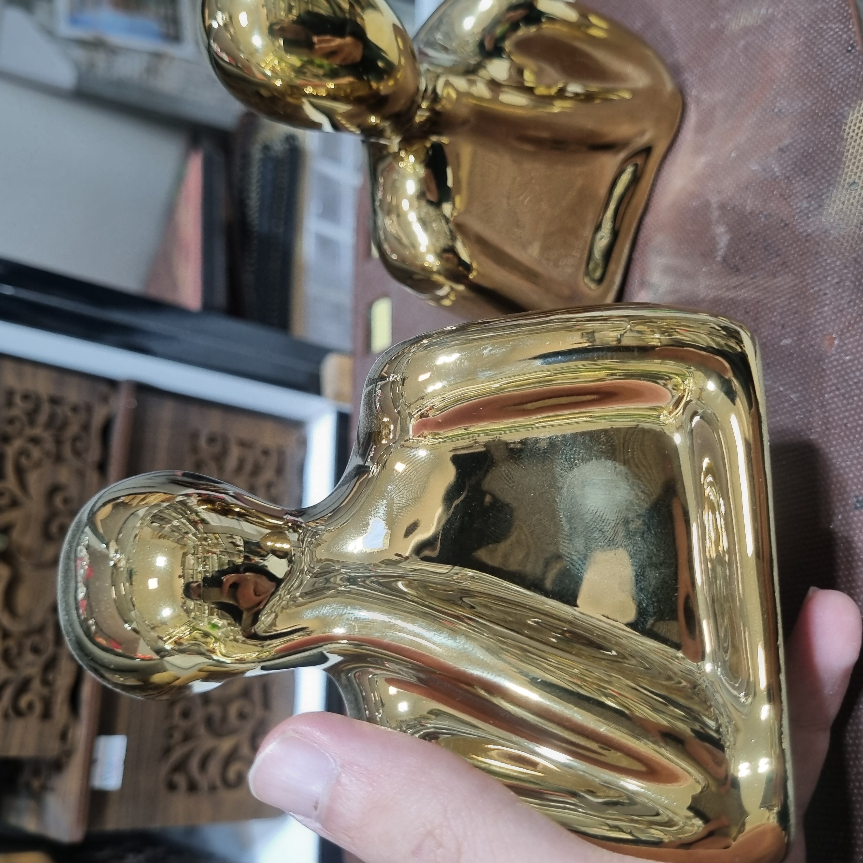 مجسمه دکوری تفکر جفتی طلایی کروم آبکاری سرامیکی مدل CN102