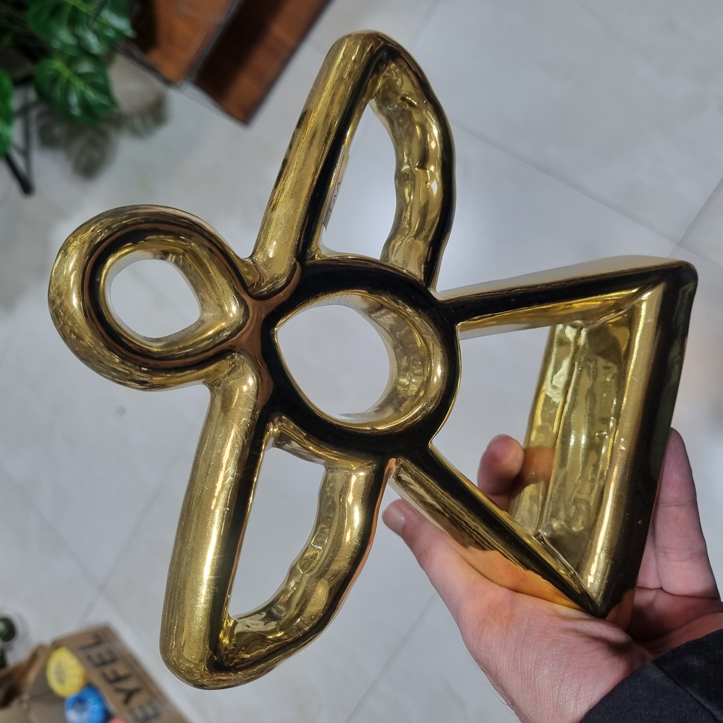 ابعاد تقریبی ۱۵×۱۵ سانتیمتر، جنس سرامیکی آبکاری کروم، رنگ طلایی براق، سبک مدرن و دکوراتیو، کد محصول CN107.