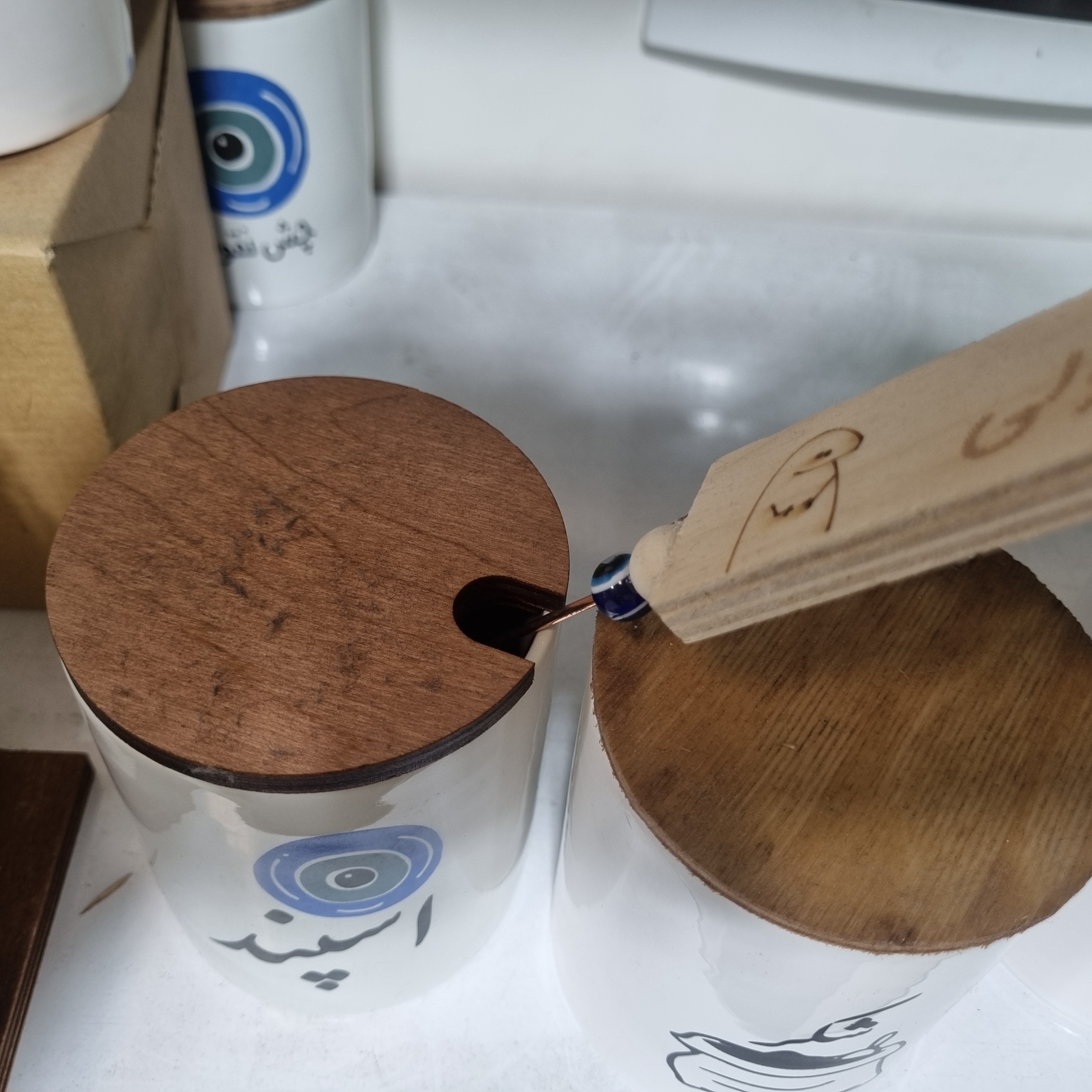 ست پاسماوری و جااسپندی سرامیکی درب چوبی کد CN1012