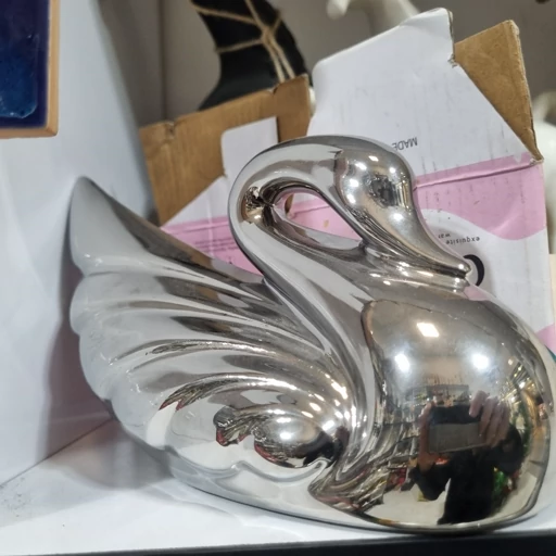 جنس سرامیک، پوشش آبکاری کروم براق، طرح قو، ابعاد حدود ۲۵×۱۵ سانتیمتر، کد محصول CN1015.