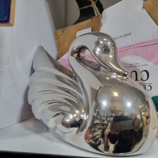 مجسمه دکوری قو سرامیکی آبکاری کروم کد CN1015