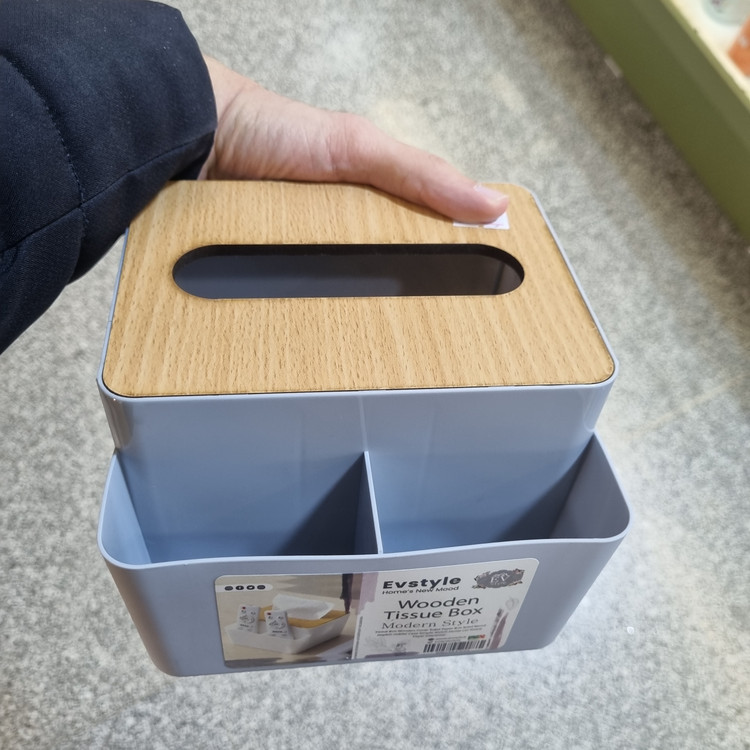 جنس آکرولیک با درب چوبی، کاربرد جا دستمالی و جا کنترلی، طراحی دکوری و چندمنظوره، ابعاد حدود ۲۰×۱۰ سانتیمتر، کد محصول CN1020.