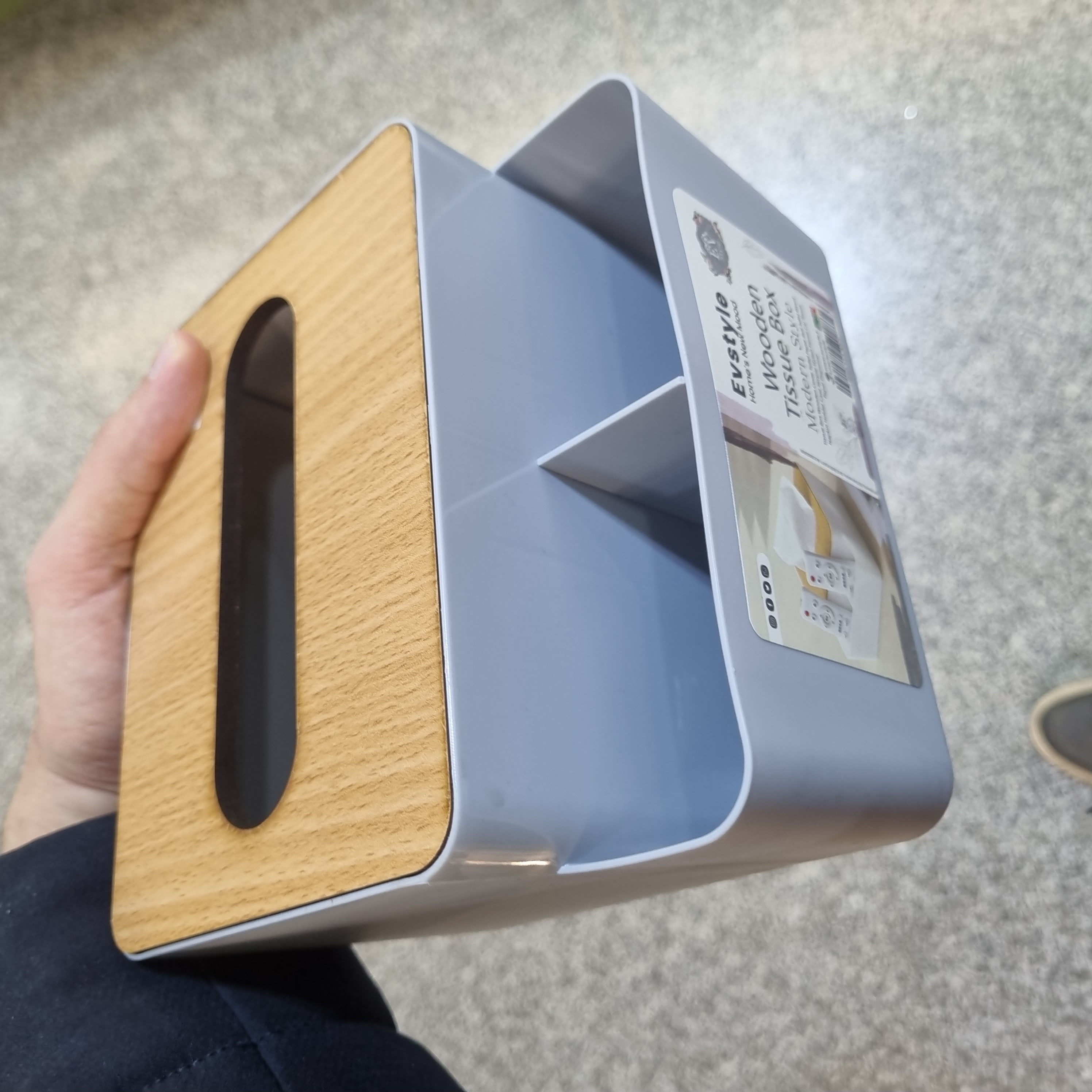 جنس آکرولیک با درب چوبی، کاربرد جا دستمالی و جا کنترلی، طراحی دکوری و چندمنظوره، ابعاد حدود ۲۰×۱۰ سانتیمتر، کد محصول CN1020.