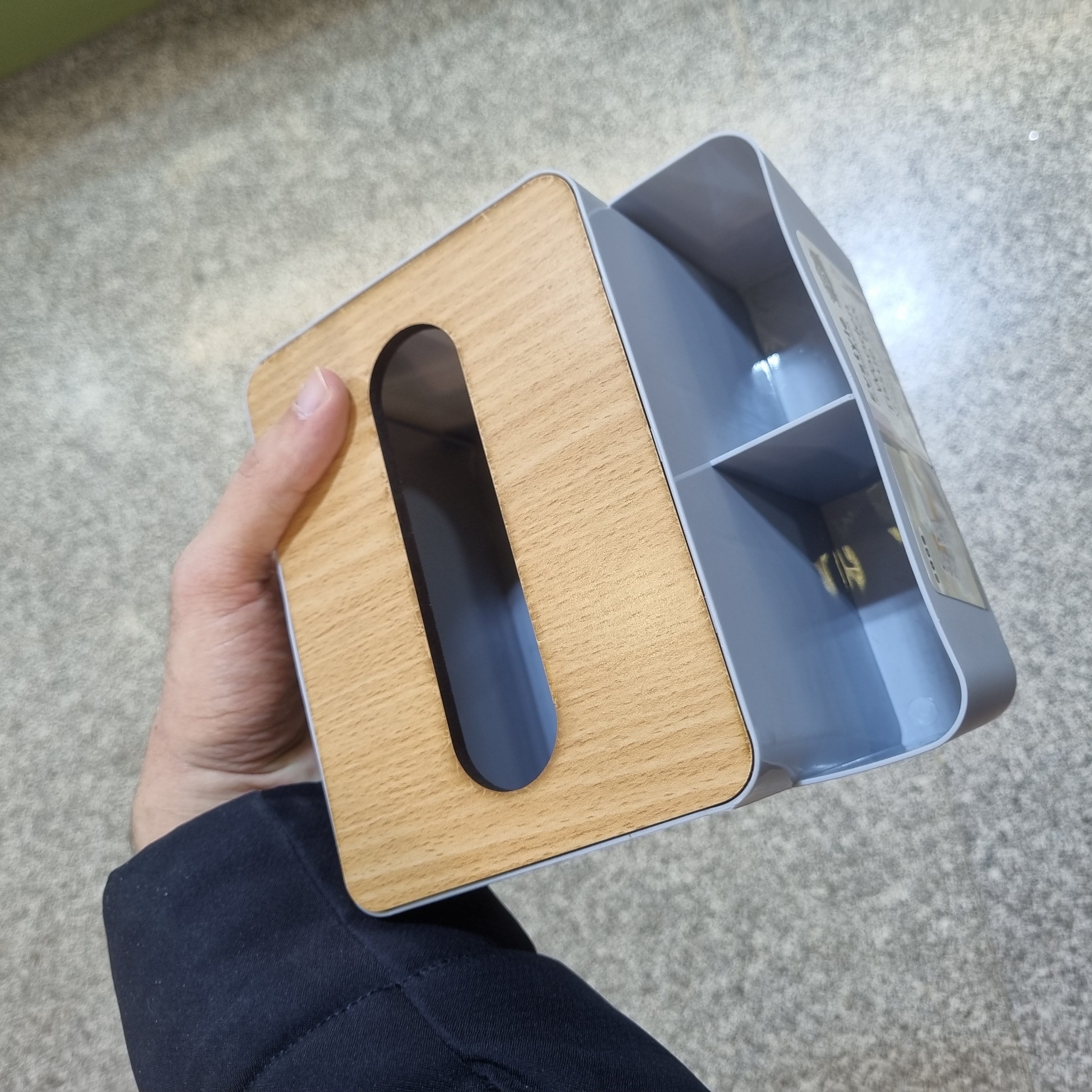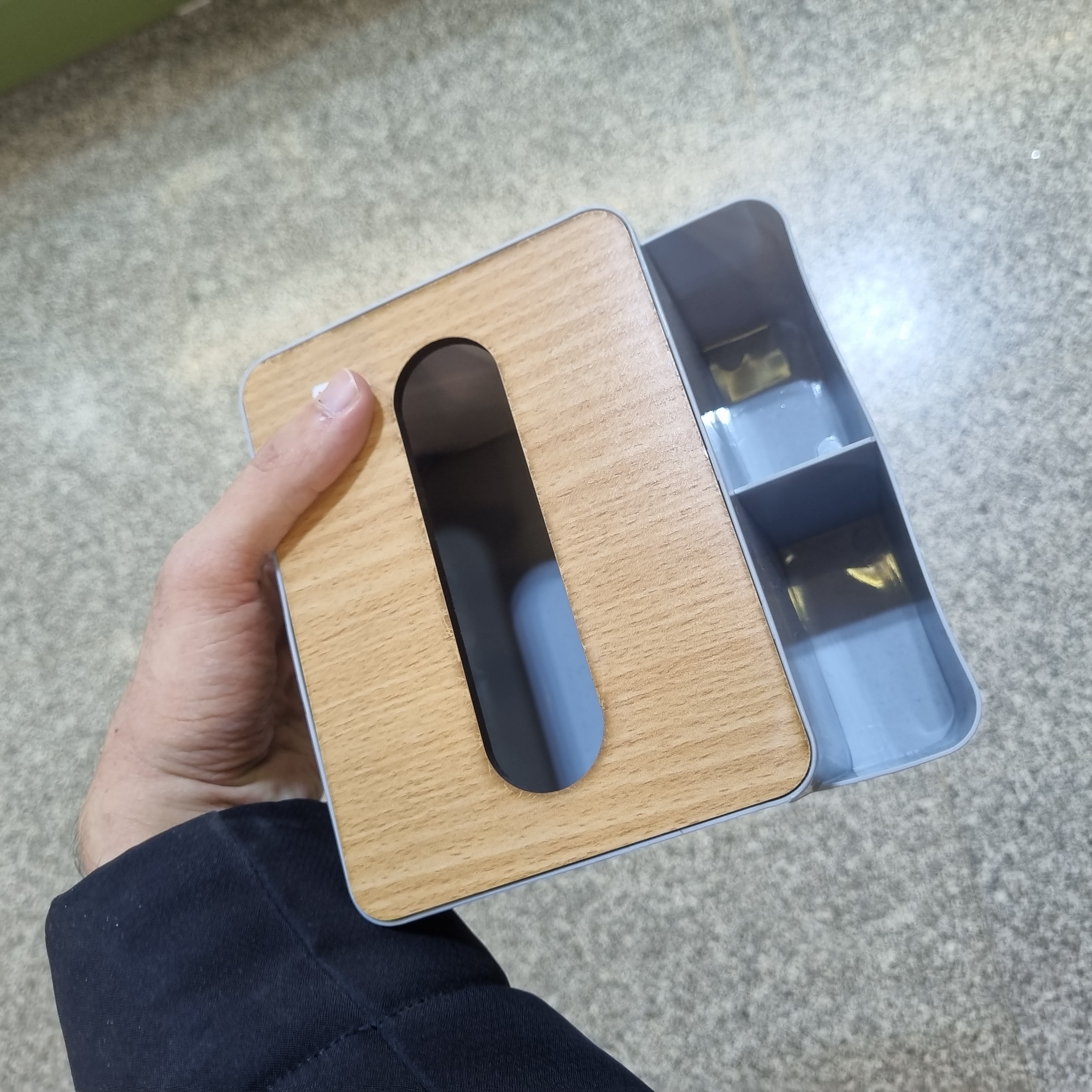 جا دستمالی و جا کنترلی دکوری مدل CN1020 یک محصول کاربردی و شیک برای نظمدهی میز جلو مبلی، میز کار یا کنسول است. این وسیله با طراحی ساده و مدرن، دارای درب چوبی با ظاهر طبیعی بوده و بدنه از آکرولیک باکیفیت ساخته شده است. بخش داخلی چندقسمتی، فضای مناسب برای قرار دادن دستمال کاغذی، ریموت کنترل، موبایل و لوازم کوچک فراهم میکند و در عین حال به دکوراسیون فضا جلوهای مرتب و امروزی میبخشد. ترکیب چوب و آکرولیک، این محصول را به انتخابی مناسب برای منزل، محل کار و هدیهای کاربردی تبدیل کرده است.