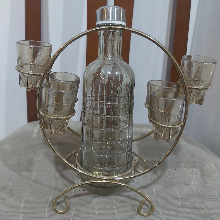 ارتفاع ۲۵ سانت رنگ شیشه شامپاینی ۶ تا استکان با استند بطری یک لیتری کار بسیار جذاب
