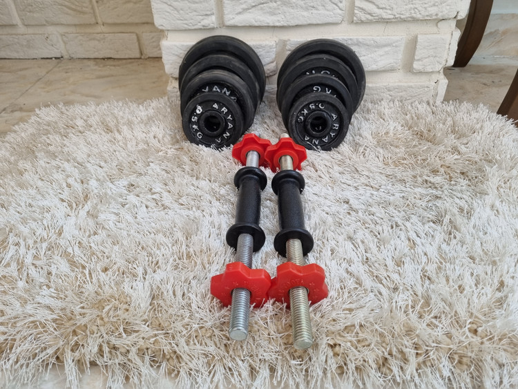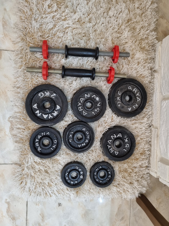 دمبل متغییر 10 کیلویی هر دست 5 کیلویی دور لاستیک