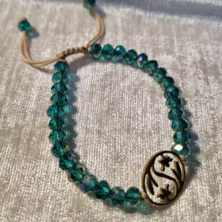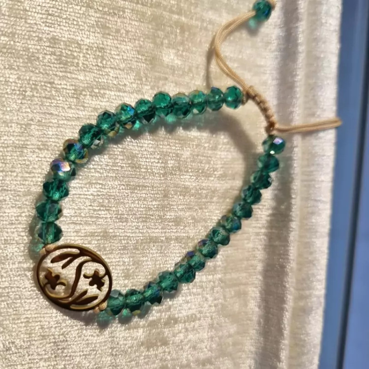 دستبند کریستال سبز با پلاک استیل کد ۹
