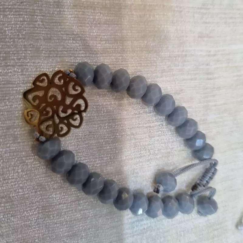دستبند کریستال سرمه ای با پلاک استیل کد ۹