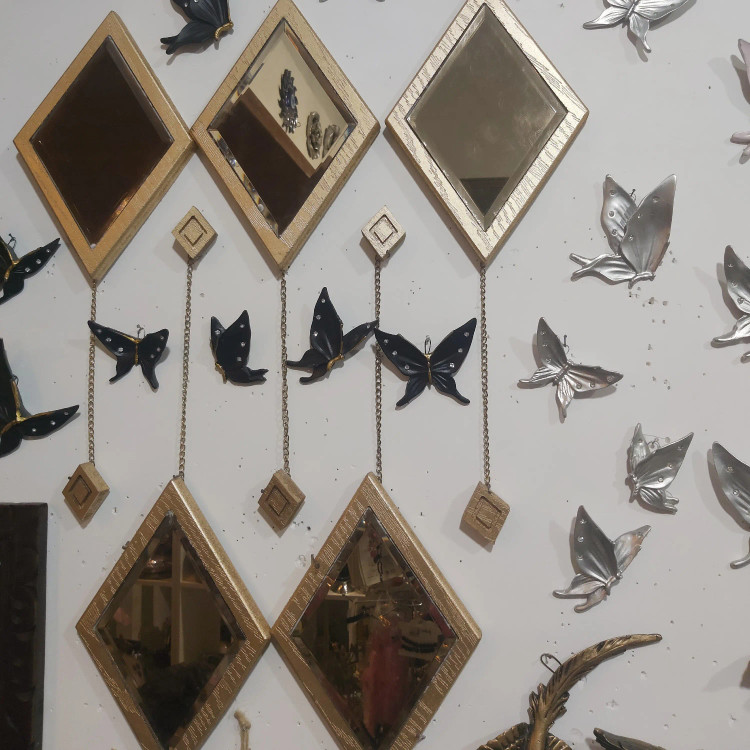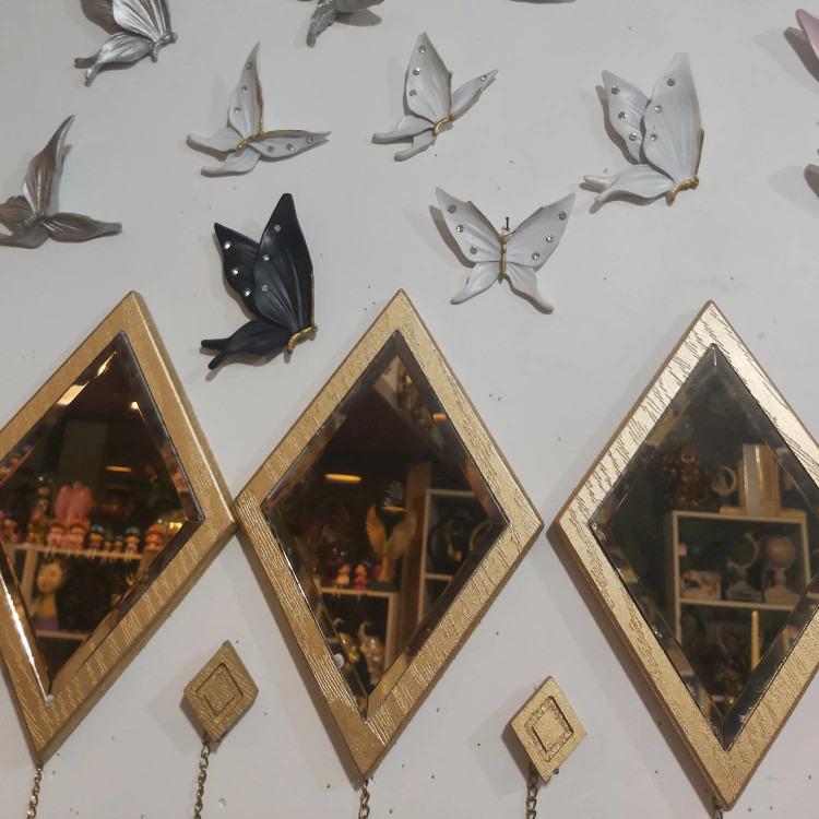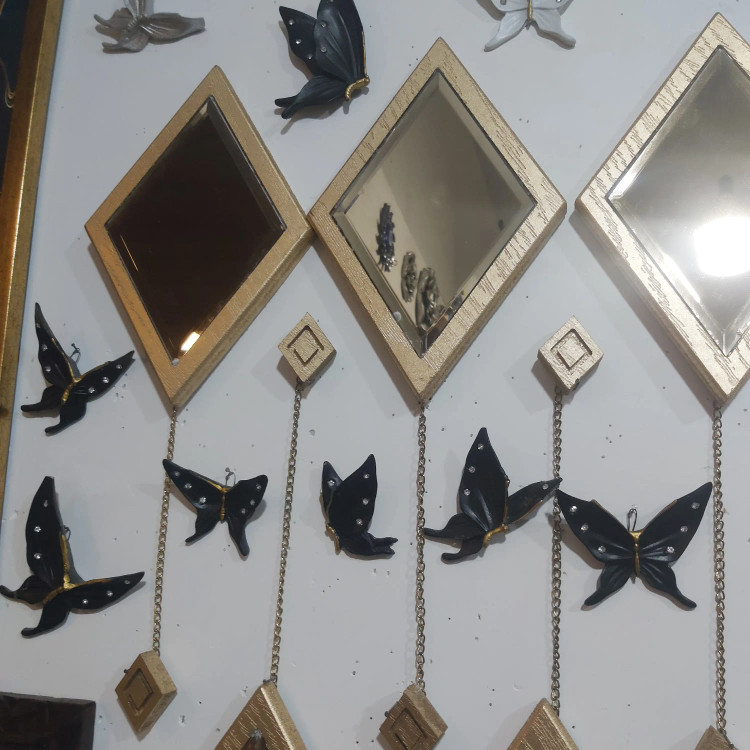 ست آینه ۵ تیکه باهم لوزی ام دی اف و شیشه ارتفاع ۳۰ سانت جای میخ کار بسیار جذاب