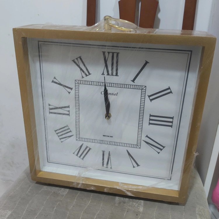 ساعت مدل چنل پایه فلزی دستگیره فلزی قاب ام دی اف امکان استفاده رومیزی و آویز سایز ۳۵×۳۵