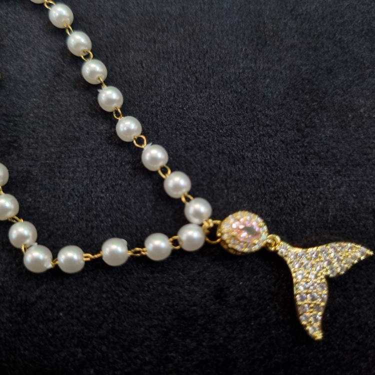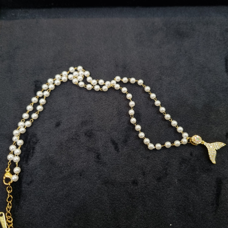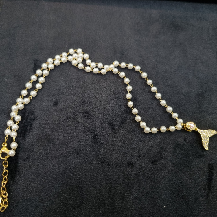 گردنبند مرواریدی زنجیر استیل کد ۹۰۸