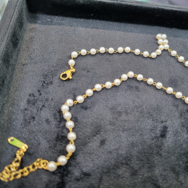 گردنبند مرواریدی زنجیر استیل کد ۹۰۹