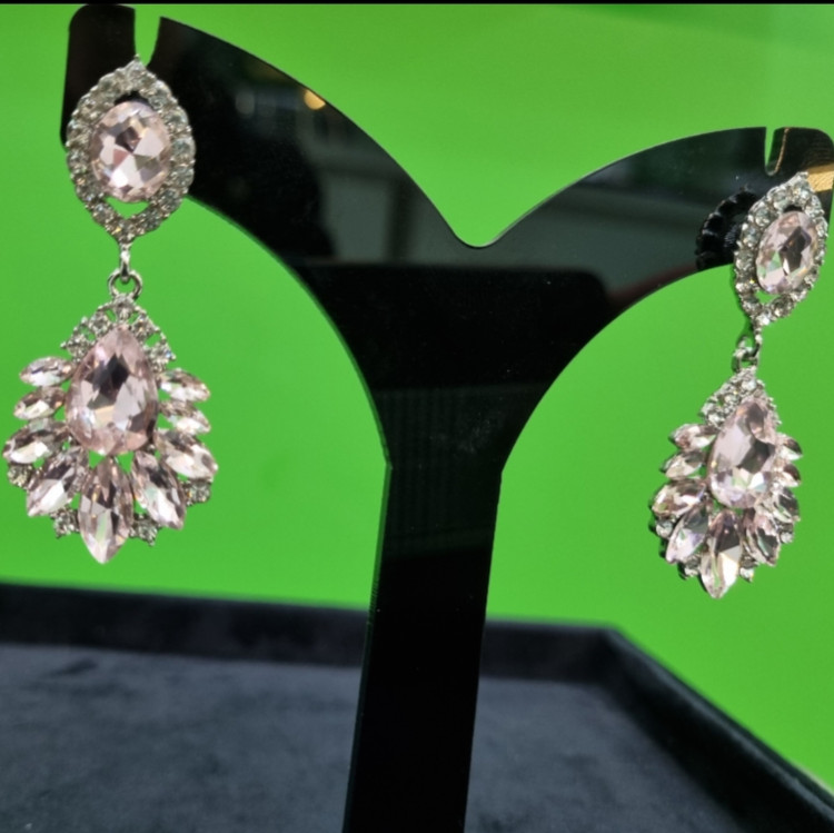 گوشواره مجلسی نگین صورتی کد ۹۰۲